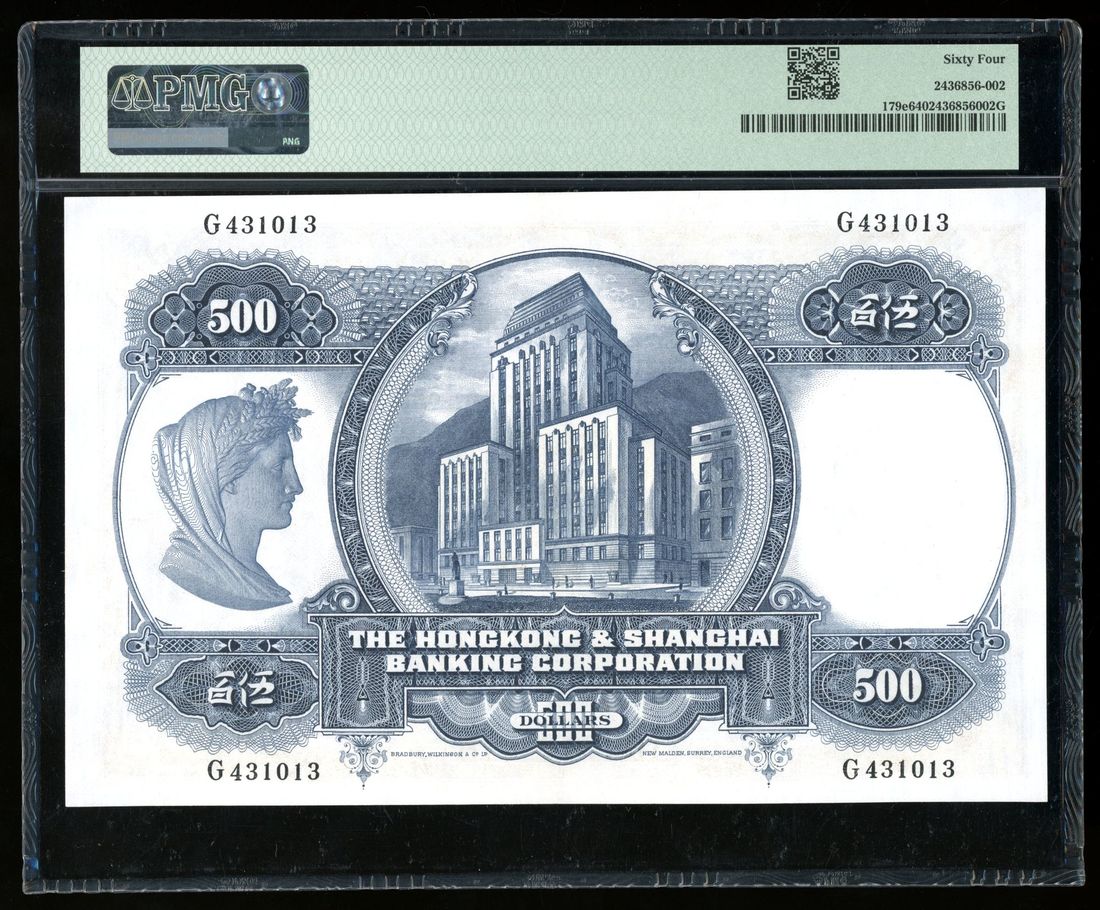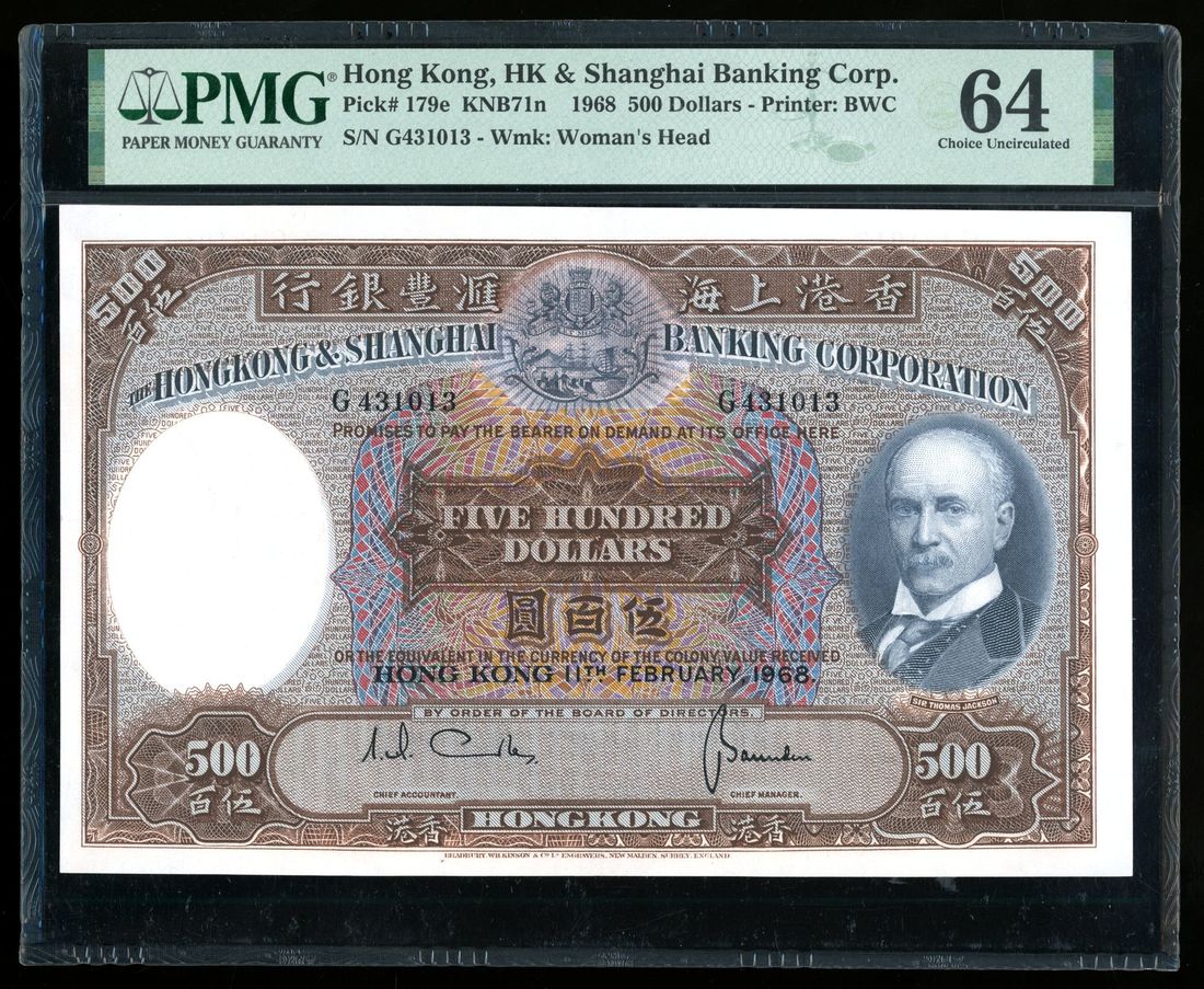 HongKong & Shanghai Banking Corporation, $500, 11.1.1968, serial number G431013, (Pick 179e), PMG 64