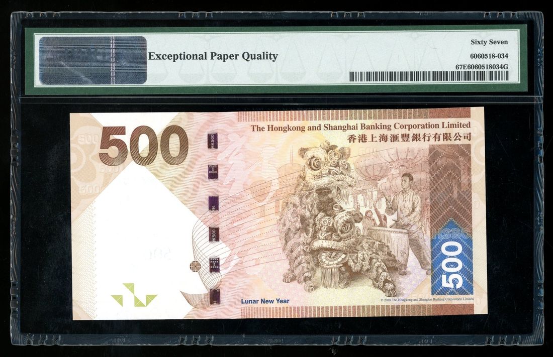 HongKong & Shanghai Banking Corporation, $500, 1.1.2016, solid serial number TW222222, (Pick 215), PMG 67EPQ