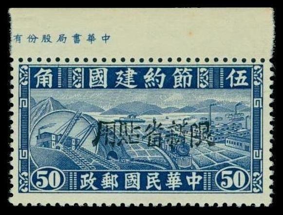 1944 overprinted "Limited for Use in Sinkiang Province" by wooden or bronze handstamps in black on Thrift Movement 8c. to $1 set of five, very fine unused. Chan PS188- PS192. Photo