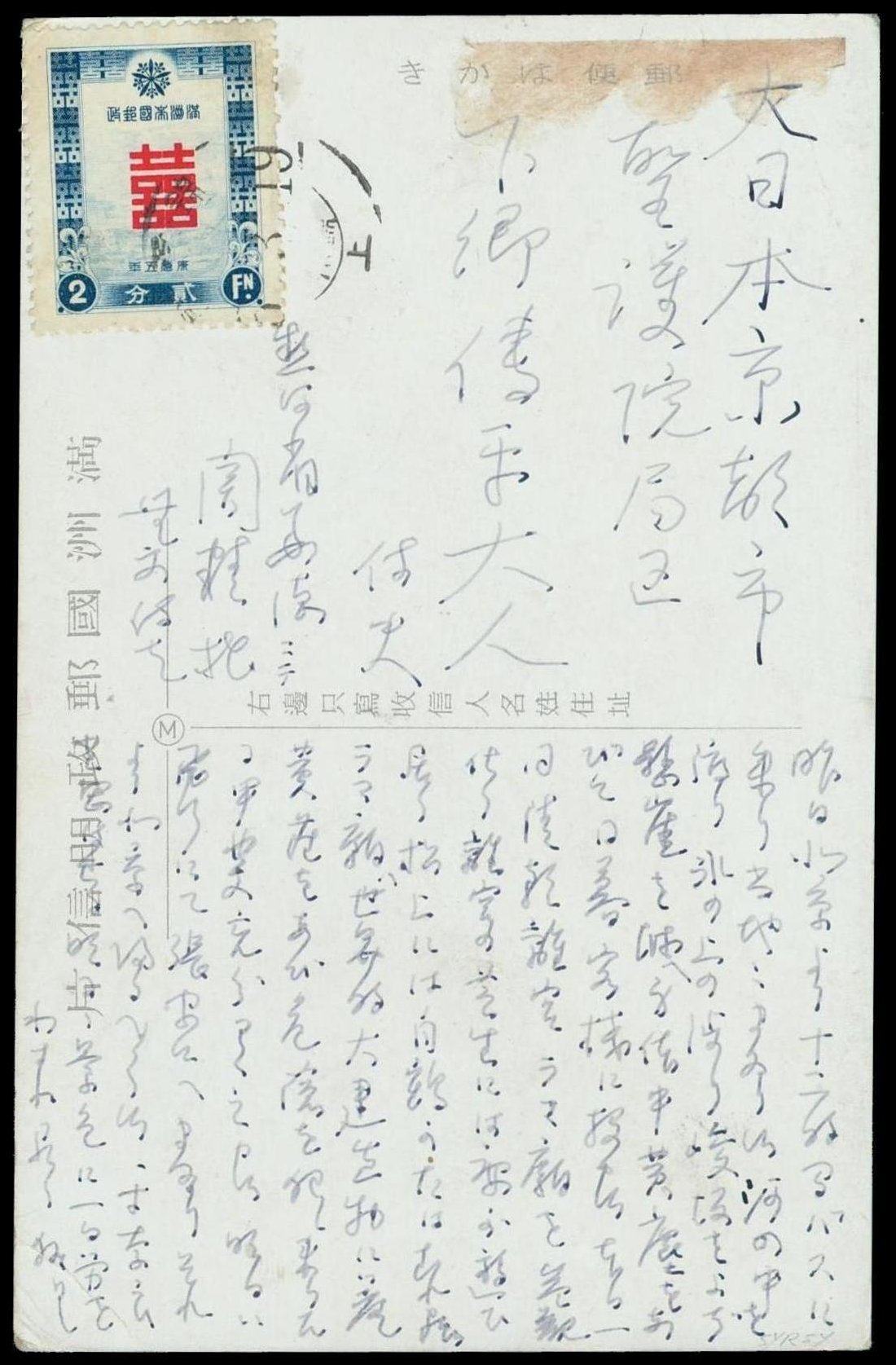 (x) 1938 (19 Mar.) photo postcard depicting Mongolian women to Japan bearing New Year's Greetings 2f. single, cancelled by "Chinchow-Chengte" T.P.O. c.d.s. Photo