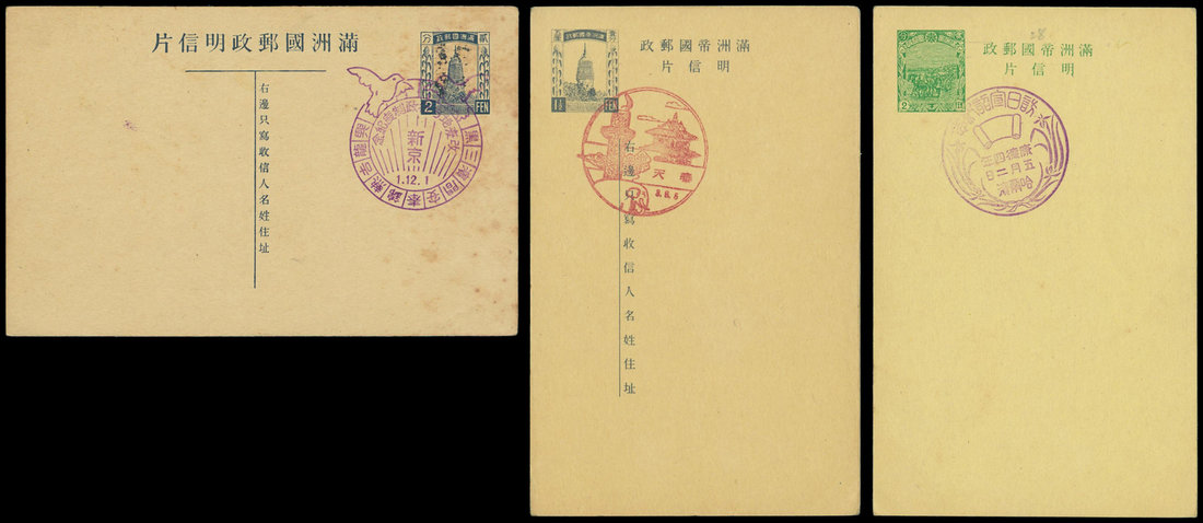 (x) A group of unused stationery cards (11) including double cards with both halves intact; a few with indicia cancelled by commemorative c.d.s. Photo