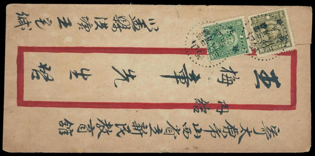(x) 1946 (18 Mar.) envelope registered to Taiyuan (21.3), bearing North China Half Value surcharge 8c. on 16c. Dr. Sun and North China overprint on 10c. Dr. Sun, tied by "Shansi/Yihsien" c.d.s. Photo