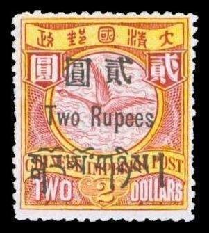 2r. on $2 claret and bright yellow, basic stamp with re-entry of the Chinese character "Two", good colours,fresh and fine mint, rare and of high cat. value. Chan T11a. Photo