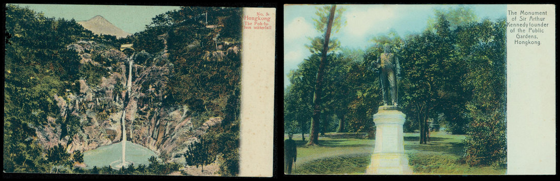 (x) A collection of picture postcards (9) depicting varios scenes in Hong Kong comprising the Monument of Sir Arthur Kennedy, the Pohfulum waterfall and the residenece on the Peak including the Governor's summer residence. Photo