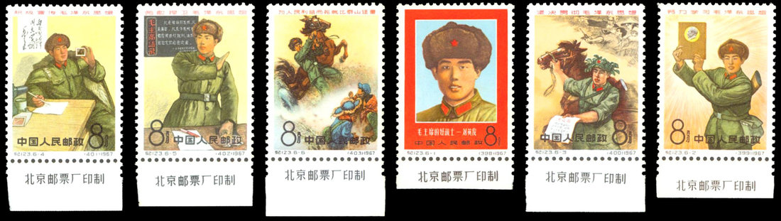 1967 Liu Yingjun (C123) 8f. set of six with imprint at bottom, unmounted mint, fresh and very fine. Yang C397-C402. Photo
