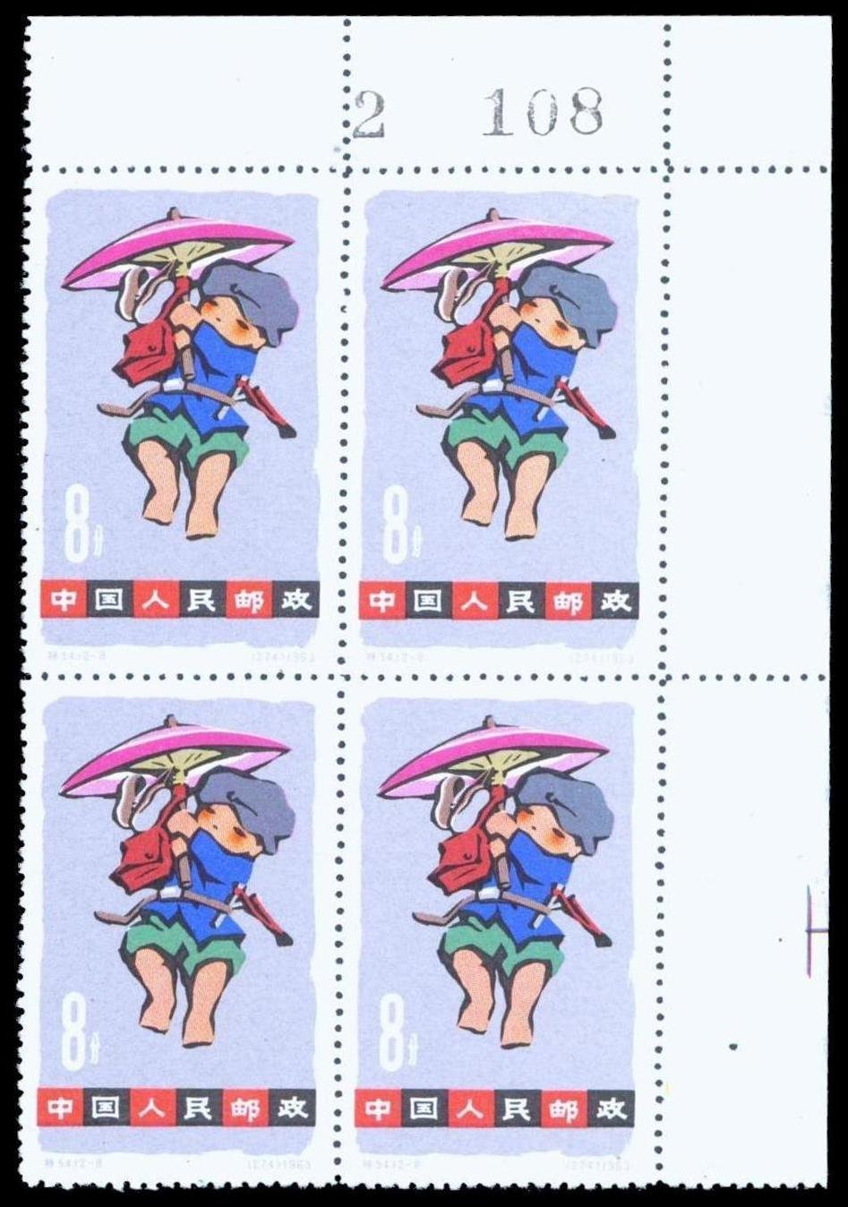 1963 Children's Day (S54) perf. 4f. to 20f. set of twelve in marginal blocks of four, unused without gum as issued with sheet requisition number, fine to very fine. Yang S267-S278. Photo