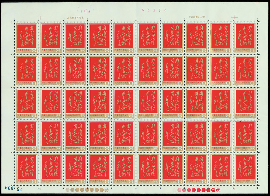 1978 Learn from Comrade Lei Feng (J26) set of three in complete sheets of fifty, unmounted mint, fine. Yang J95-J97. Photo