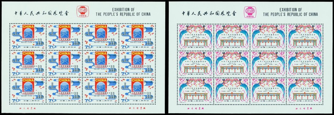 1980 Exhibition of China in U.S.A. (J59) 8f. and 70f. in sheetlets of twelve, unmounted mint. Yang J161-162. Photo