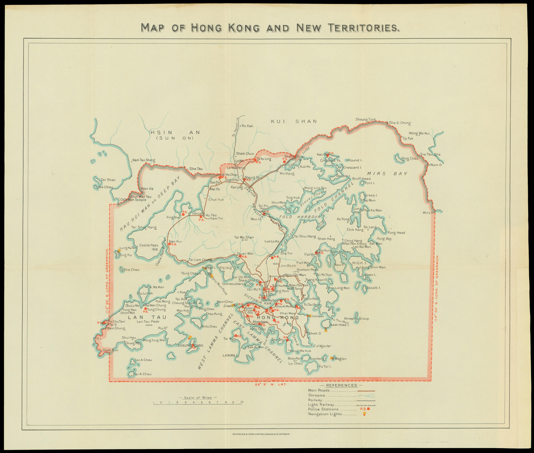 Map of Hong Kong and New Territories, Published by Waterlow. London. Lithograph. No date. 20th century.