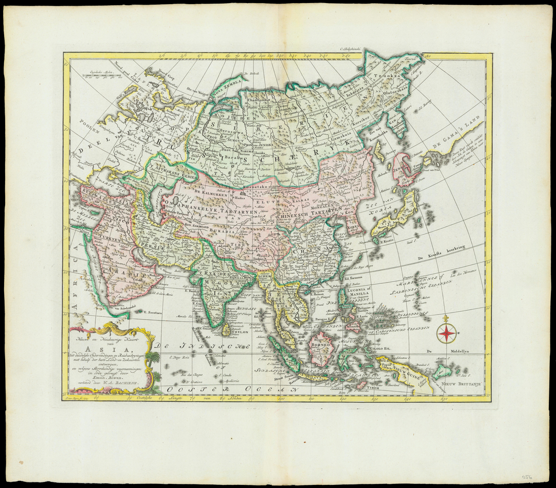 Map pf Asia, Published by Bachienne. Amsterdam. C. 1759. Copper Engraving. Later colour.