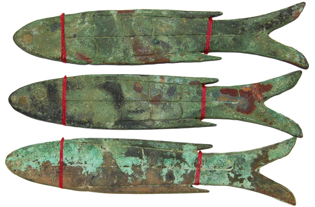 Ancient coinage, Zhou/Spring and Autumn Period, lot of 3x bronze fish shaped coins,