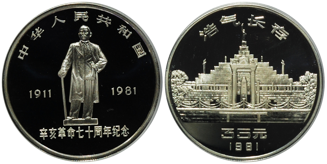 China, silver proof 35yuan, 1981, issued to commemorate the 70th Anniversary of the Wuchang Uprising, weighs 31.1grams,