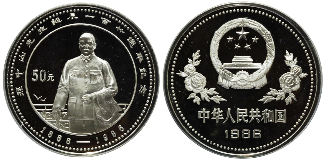 China, silver proof 50yuan, 1986, struck to commemorate the 120th Anniversary of the Birth of Sun Yat Sen, 5oz silver,