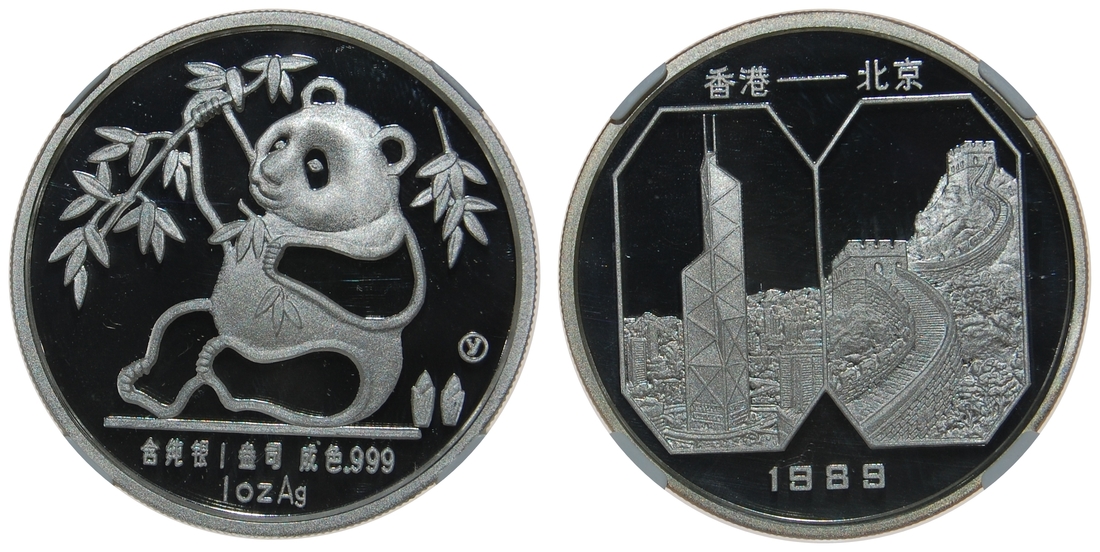 China, Silver medal, 1989, Hong Kong Exposition, 1 oz Silver, proof, NGC holder PF68 Ultra Cameo, mintage 1500