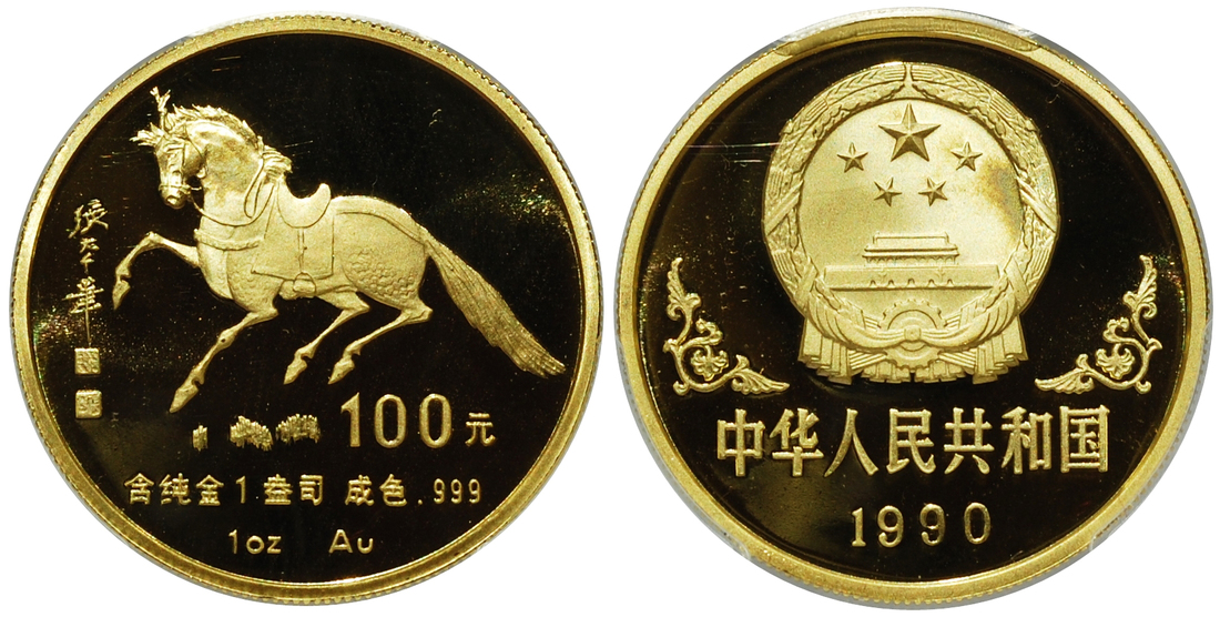 China, gold proof 100yuan, 1990, 'Year of the Horse', 1oz gold coin,