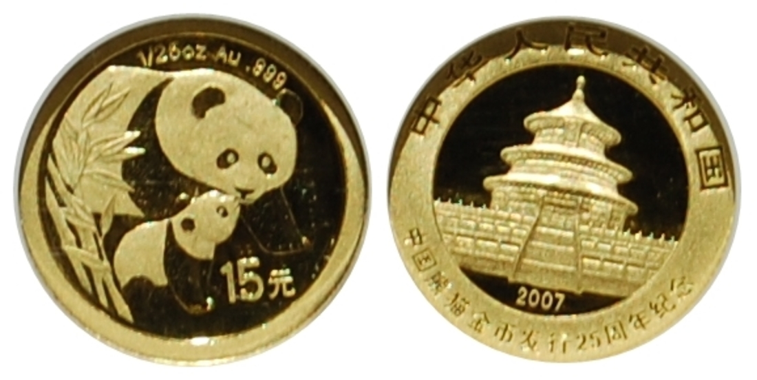 China, Gold 15 yuan, 2007(2004), 'Panda', 0,0398 oz gold, one of the 25th Anniversary Gold Panda set, NGC PF70.