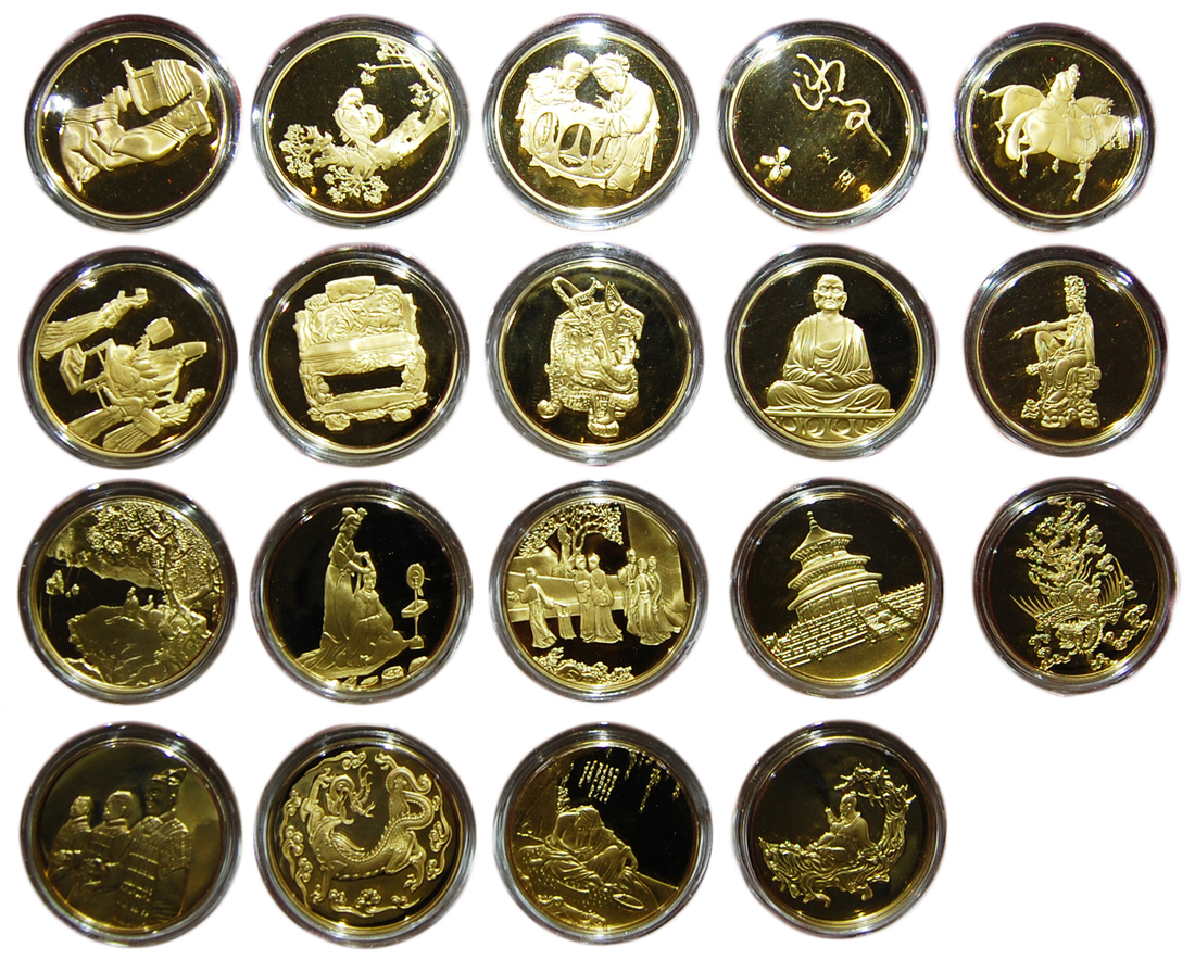 China, partial set of 19 gilt medallions, from the series 'Twenty Masterpiecesfrom Ancient China'