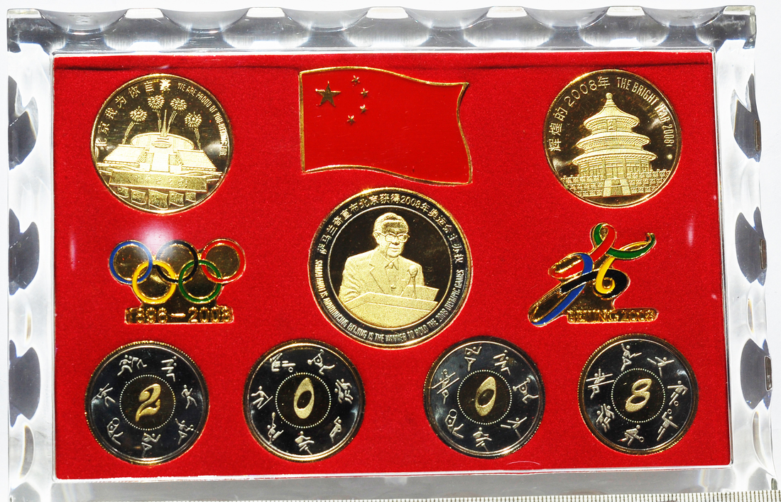 China, set of bimetallic medals to commemorate the Beijing Olympics, 2008, 7 coins, various sporting scenes,