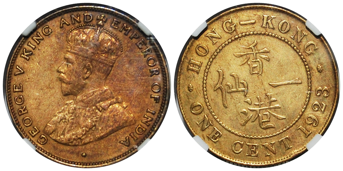 Hong Kong, bronze 1cent, 1923, NGC AU Details