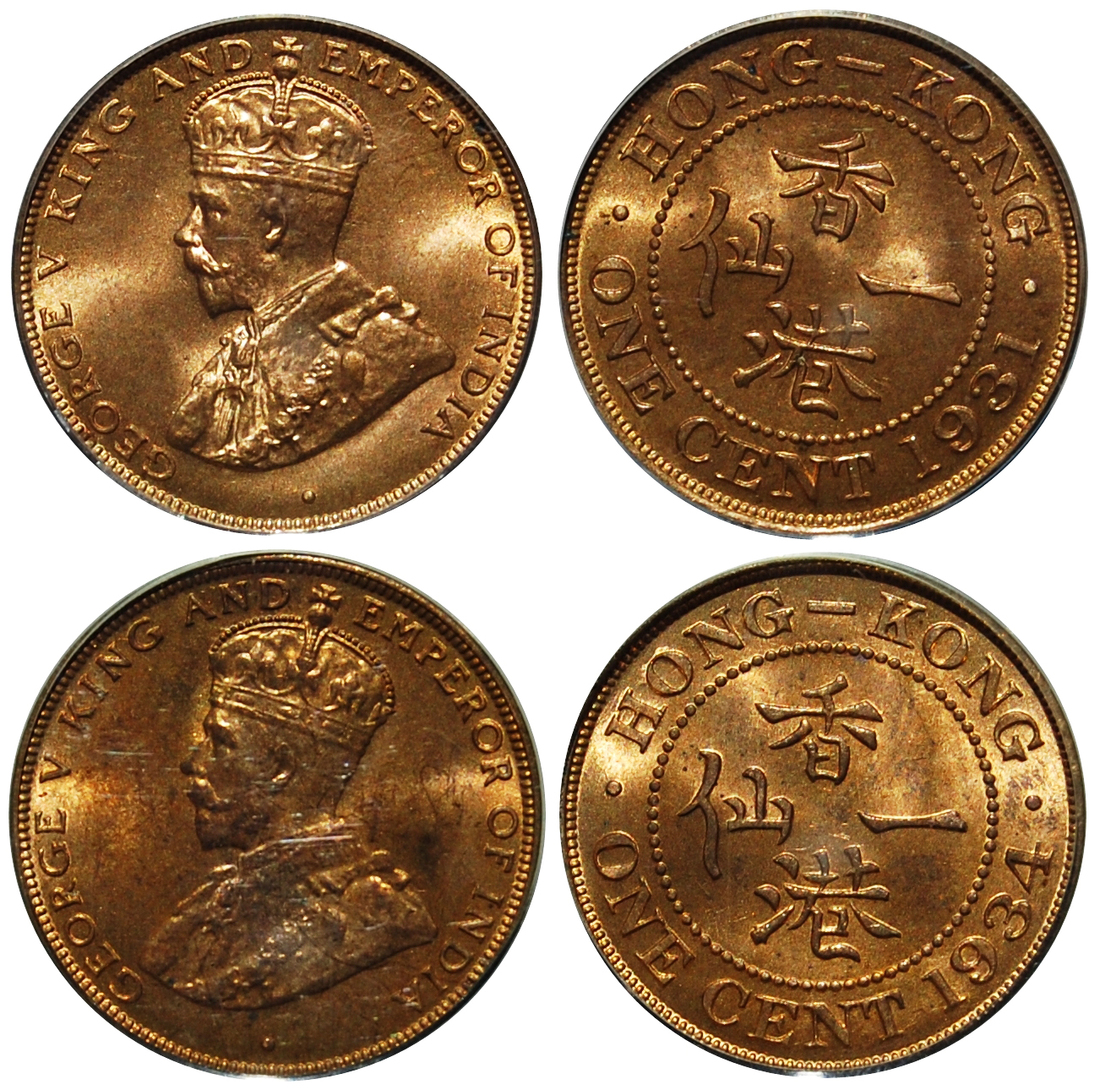 Hong Kong, lot of 2x bronze 1cent, 1931 and 1934, PCGS MS66RD and MS64RD respectively (2).