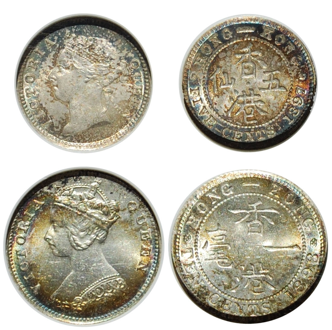 Hong Kong, lot of 2x silver coins, 5cents 1897 and 10cents 1898, both graded ANACS MS63 (2).