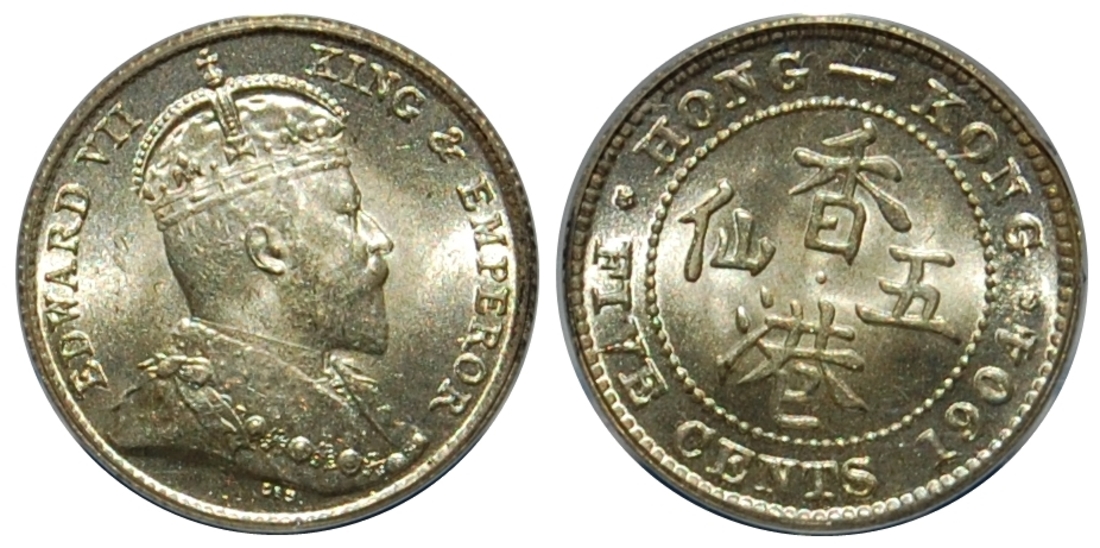 Hong Kong, silver 5cents, 1904, PCGS MS66.