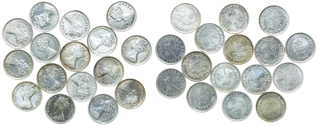 Hong Kong, lot of 16x Silver 10cents, Victorian era, 1880's to 1900, cleaned very fine and above (16).