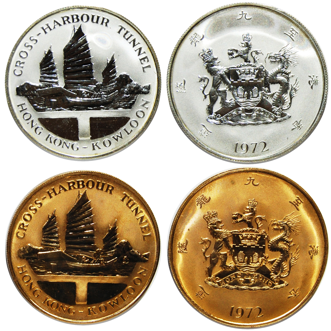 Hong Kong, set of one silver and one gold medal, 1972, struck to commemorate the opening of the Cross Harbour Tunnel, each weighing 1oz,