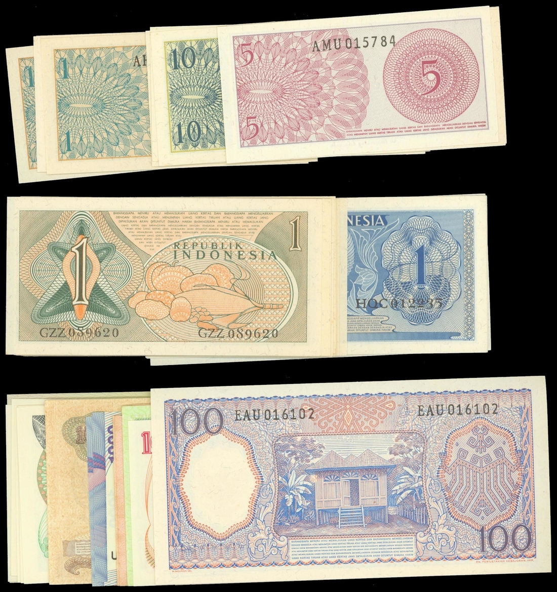 Indonesia, mixed lot of 1 sen(4), 5 sen(5), 10 sen(5), 1964, 1 rupiah(14), 1961, 1 rupiah(4), 1956, 5 rupiah(11), 1959, 10 rupiah(2), 1959, 100 rupiah(10), 1964 and 1984, 500 rupiah(15), 1977,1988 and 1992, 1000 rupiah(3), 1968 and 2000, some foxing, mostly uncirculated.(73)