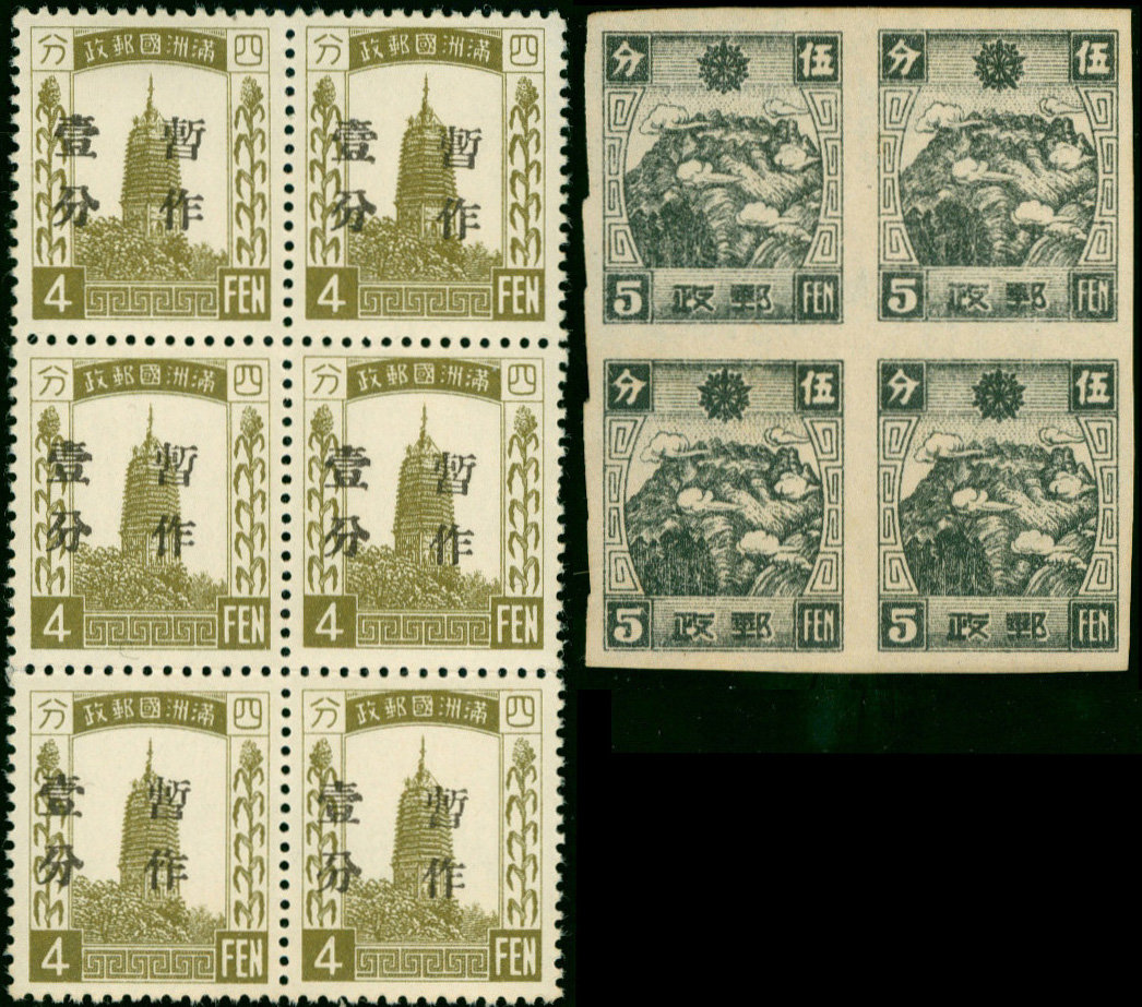 A mint collection on stockleaves with 1932 set to 1y. with some duplicated values to 1y. (mounted), 1934-35 1f. on 4f. block of six, 1933 First Anniversary set, 1935-37 5f. imperf. plate proof block of four, 1935-36 commemoratives, 1936-37 values to 1y., 1937 Five Year Reconstruction (2 sets), plus some later issues; condition is a little mixed in places but many are fine being either lightly mounted or unmounted mint