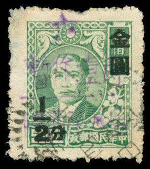 1949 Liu-An hand-surcharge with 'Temporarily Used for 5c. and West Anhwei Liberation Area in two horizontal rows, and a star at top on Sun Yat Sen, G.Y. surcharge 10c. on (½ G.Y.) $500 green, violet surcharge, fine used. Yang ECL9.