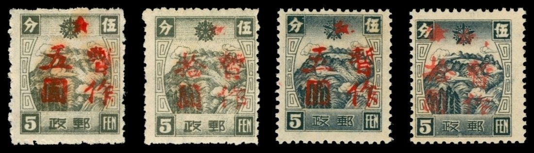 1947 Northeast Area, Antung Second surcharge on stamps of Manchukuo with new value. NE246-249, set of 4, unused, very fine.