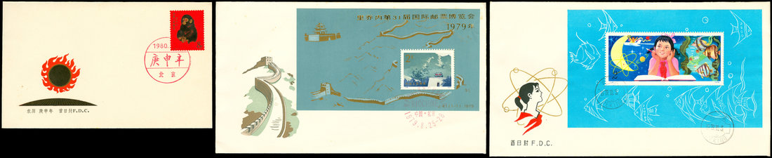 1974-80 a collection of first day covers in two albums which includes 1974 Industrial Production, 1978 Galloping Horses miniature sheet, Flying Fairies miniature sheet, Bridges miniature sheet, Science Conference miniature sheet, 1979 Great Wall miniature sheet, Riccione Stamp Fair miniature sheet, Study Science miniature sheet, Camellias of Yunnan miniature sheet, Stamp Exhibition miniature sheet, 1980 Qi BASHI miniature sheet and the Monkey stamp on illustrated cover. All are fresh and fine and unaddressed. A good collection. (134 covers)