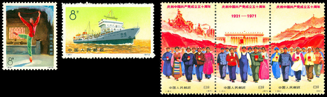 1971 Chinese Communist Party (N4), Table Tennis (N5), Albanian Workers' Party (N6), 1972 Merchant Shipping (N7), Yenan Forum (N8), Physical Culture (N9), Wang Chin Hsi (N10), Table Tennis (N11), Red Flag Canal (N12), 1973 White Haired Girl (N13), Giant Pandas (N14), Table Tennis (N20); 1974 Gymnastics and Acrobatics (T1-2), plus others. Occasional light age mark, generally clean and fine