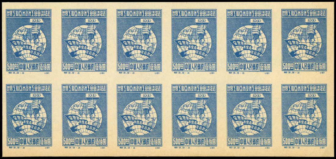 1949 C3 Commemorating Trade Union Conference of Asian and Australasian, imperf. block of 12. Offer as is.