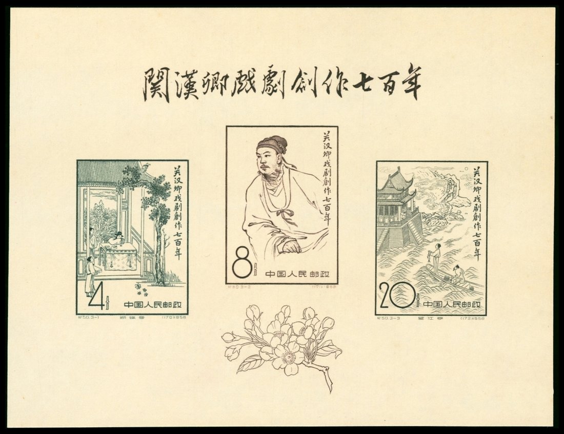 1958 C50M 700th Anniversary of Guan Hanqing's Dramatic Works. Unused, very fine. 1 sheet.