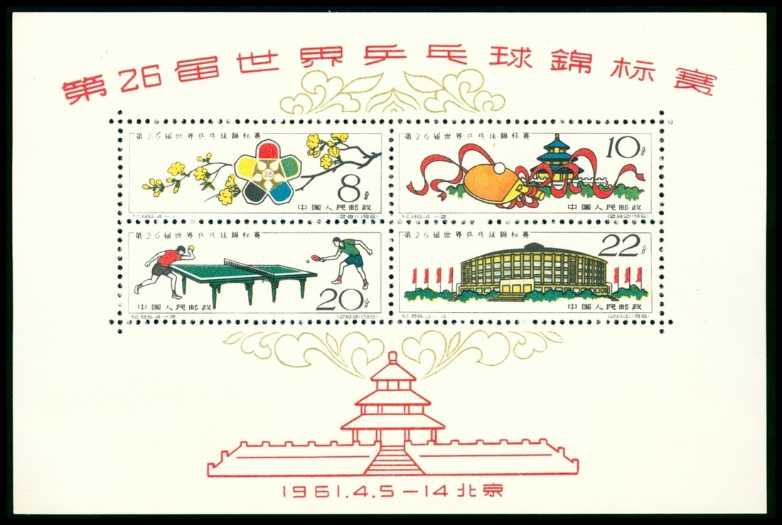 1961 C86M Table Tennis miniature sheet, unused, light toned. SG MS1971a
