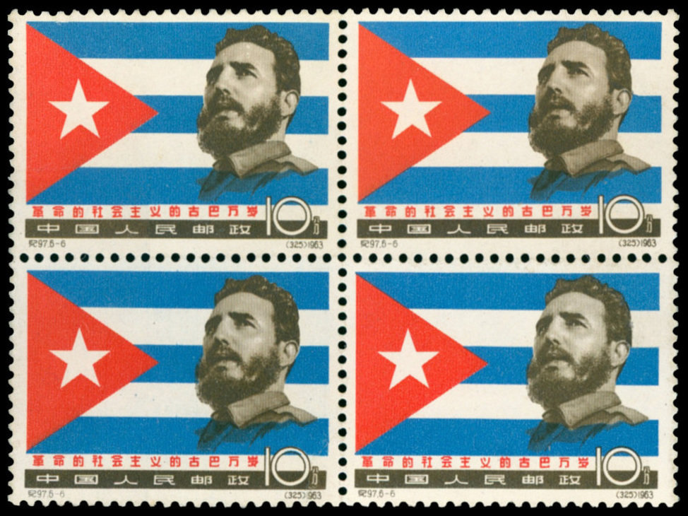 1963 C97 Cuban Revolution, 4f. to 10f., set of six, block of four, no gum, scarce in blocks. Fine. SG 2063-2068