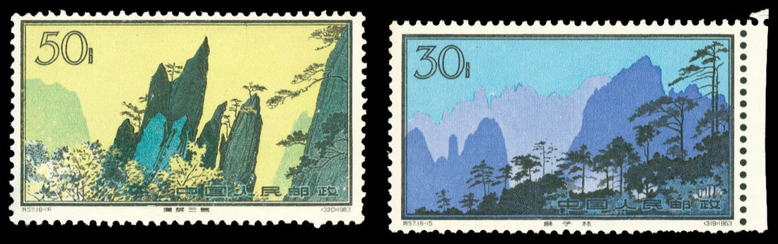 1963 Hwangshan Landscapes (S57)4f. To 50f. Complete set of sixteen,fresh colour, very find unused. Yang S305-320.