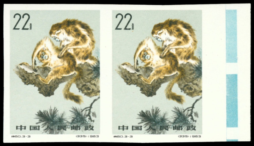 1963 S60i Snub-nosed Monkeys, horizontal pair with right margin, unmount mint, fine.