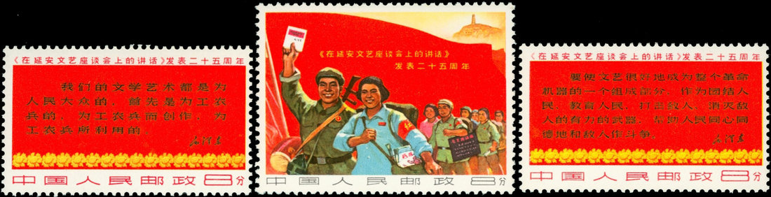 1967 W3 25th Anniversary of Publication of "Talks at the Yanan Forum on Literature and Art", set of 3, unused. Very fine