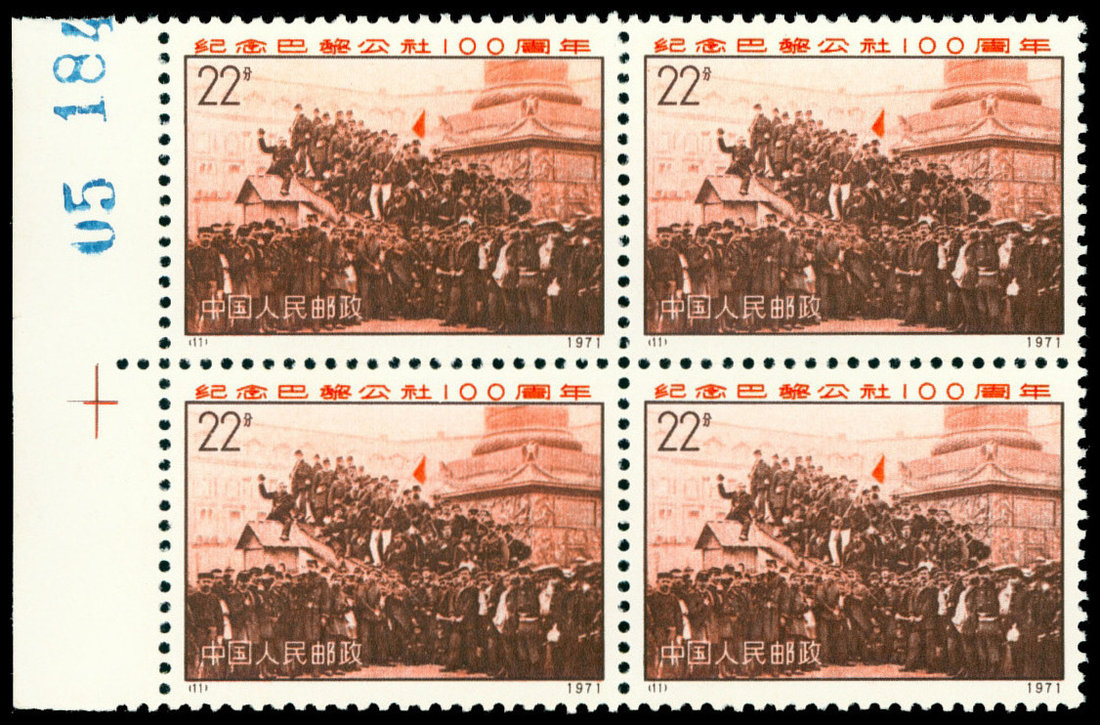 1971 N3 Commemorating Centenary of the Paris Commune, all with sheet margin, block of 4. Very fine.