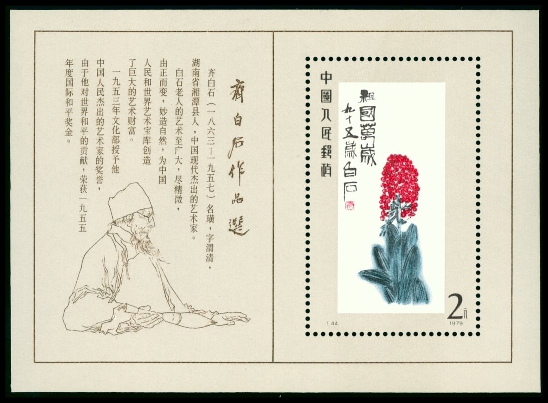 1980 T44M Paintings of Qi Baishi miniature sheet, unmounted mint, very fresh. SG MS2955