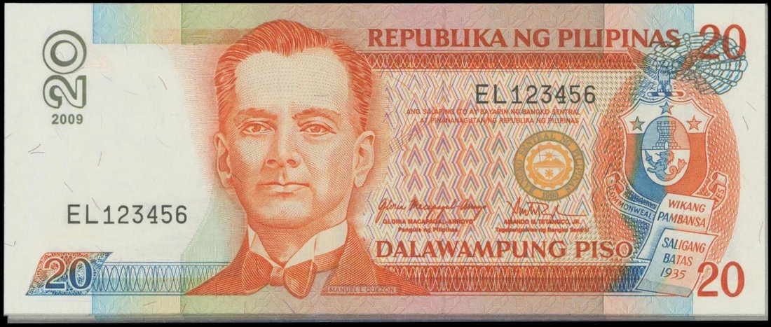 Philippines, a group of lucky/fancy serial numbers for the 20 pesos, dated 2009, all with the same 'EL' prefix, EL000001 to EL000010, EL123456, EL654321 and EL111111 to EL1000000,