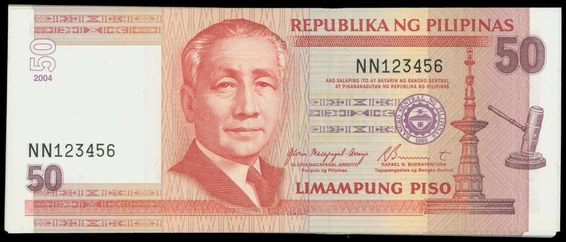 Philippines, a group of lucky/fancy serial numbers for the 50 pesos, dated 2004, all with the same 'NN' prefix, NN000001 to NN000010, NN123456, NN654321, NN111111 to 1000000,
