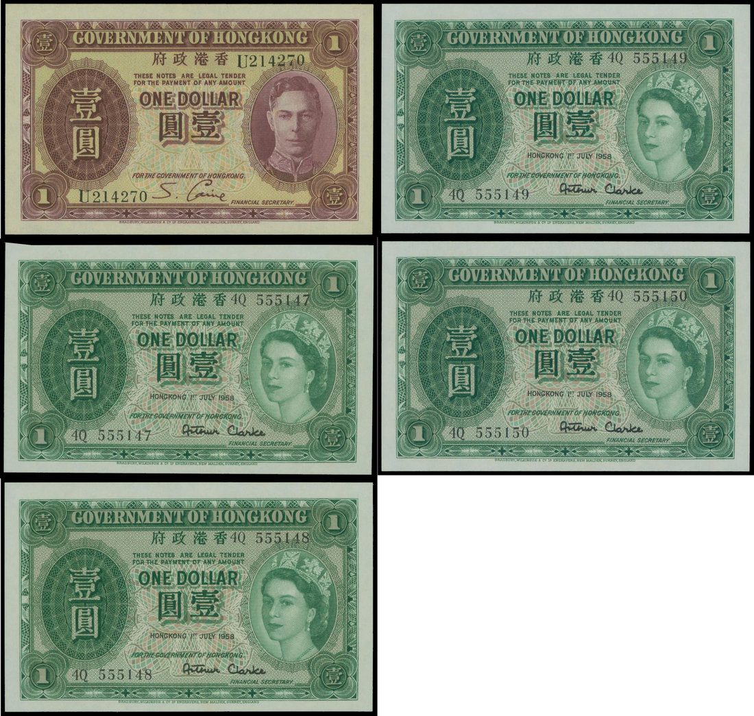 Government of Hong Kong, group of $1 consisting of, 1936, 1958 (4),