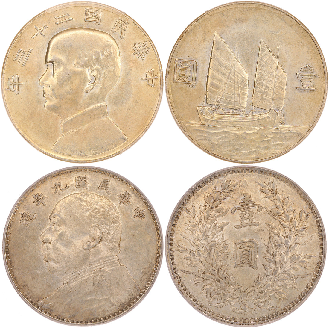 Republic of China, lot of 2x silver dollars, Fatman, 1920, and Junk, 1934,