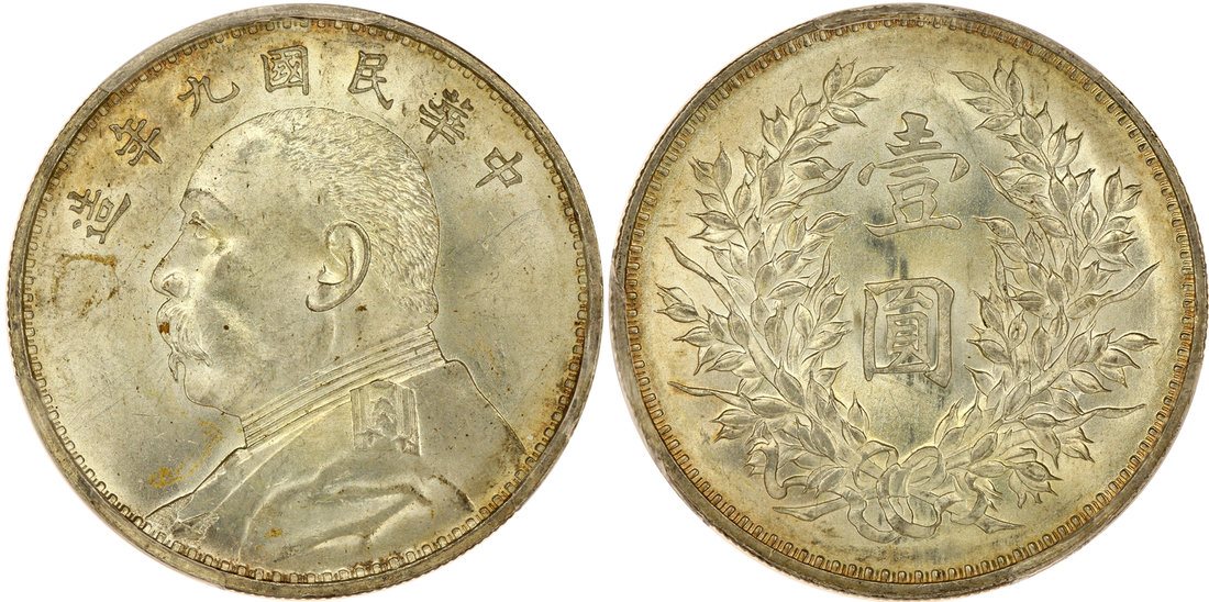 China, silver $1, 1920, Year 9 Fatman Dollar, Yuan Shih Kai on obverse,