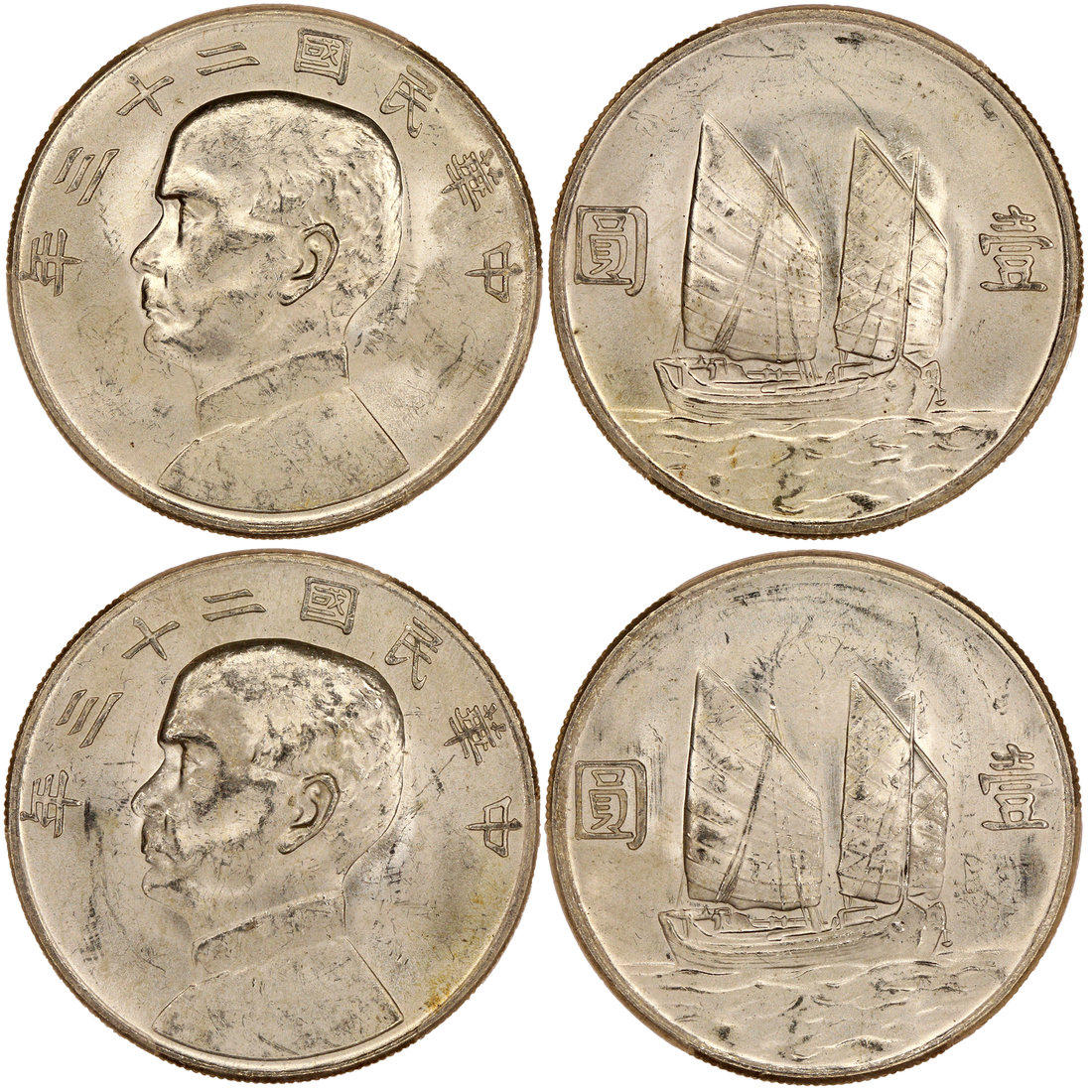 Republic of China, lot of 2x silver 'Junk' dollars, 1934, Sun Yat Sen on the obverse,