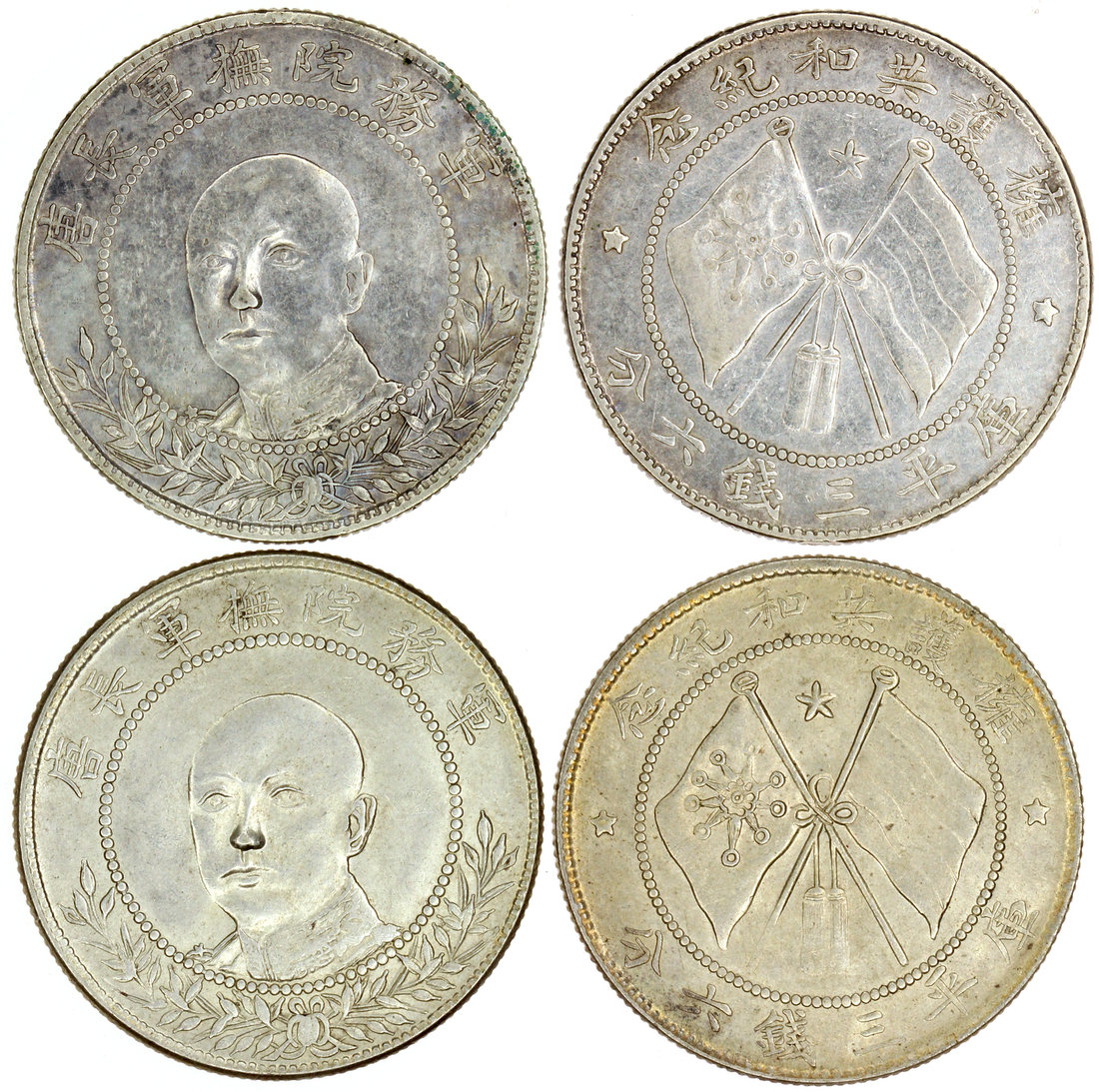 Yunnan Province, 2x silver 50 cents, no date (1917), with a three quarter profile of General Tan Ji Yao on the obverse,
